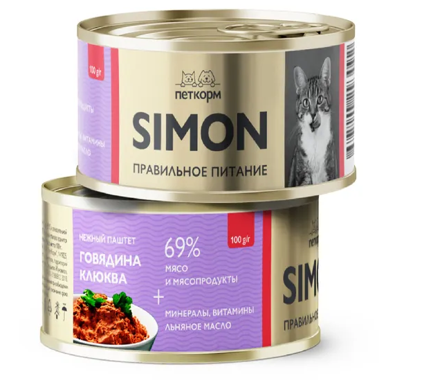 Банки Simon для взрослых кошек паштет с говядиной и клюквой