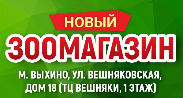 Новый зоомагазин открылся по адресу: г. Москва, ул. Вешняковская, дом 18 (ТЦ Вешняки, 1 этаж)